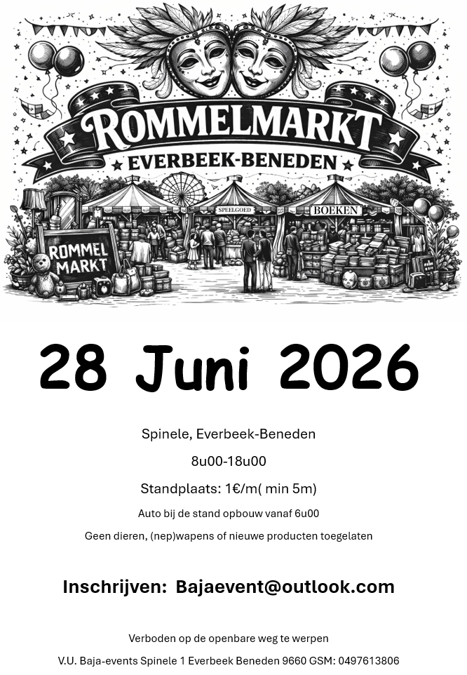 gezellige rommelmarkt in de Vlaamse Ardennen met +/-200 standplaatsen.Informations pratiques
