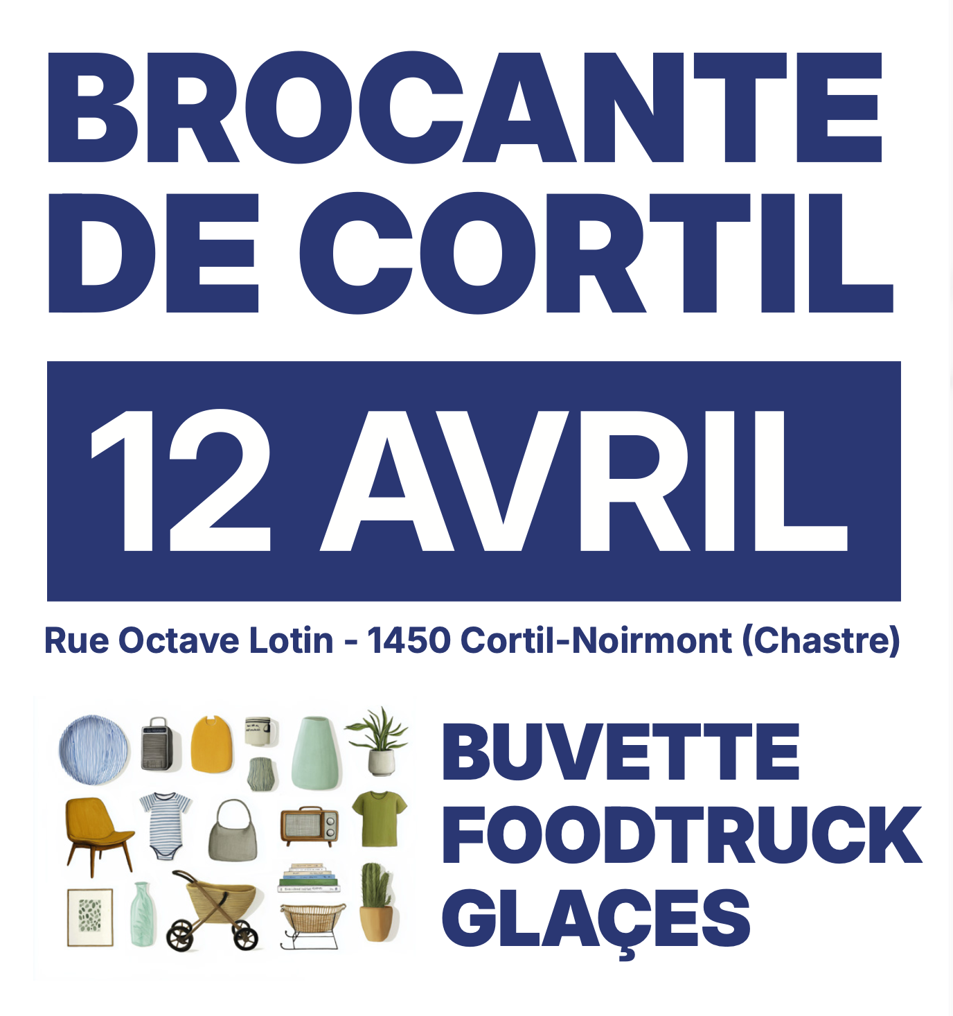 Chineurs, familles & gourmands : on vous attend !Entrée libre de 8h à 17h. Flânez entre les stands, dénichez la perle rare et profitez d’une journée en plein air avec buvette, petite restauration et foodtruck pour régaler toute la famille.