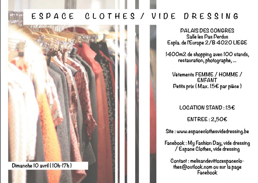 Grand vide dressing à petit prix! Maximum 15€ par piècele DIMANCHE 10 AVRIL de 10h à 17h au PALAIS DES CONGRES.
