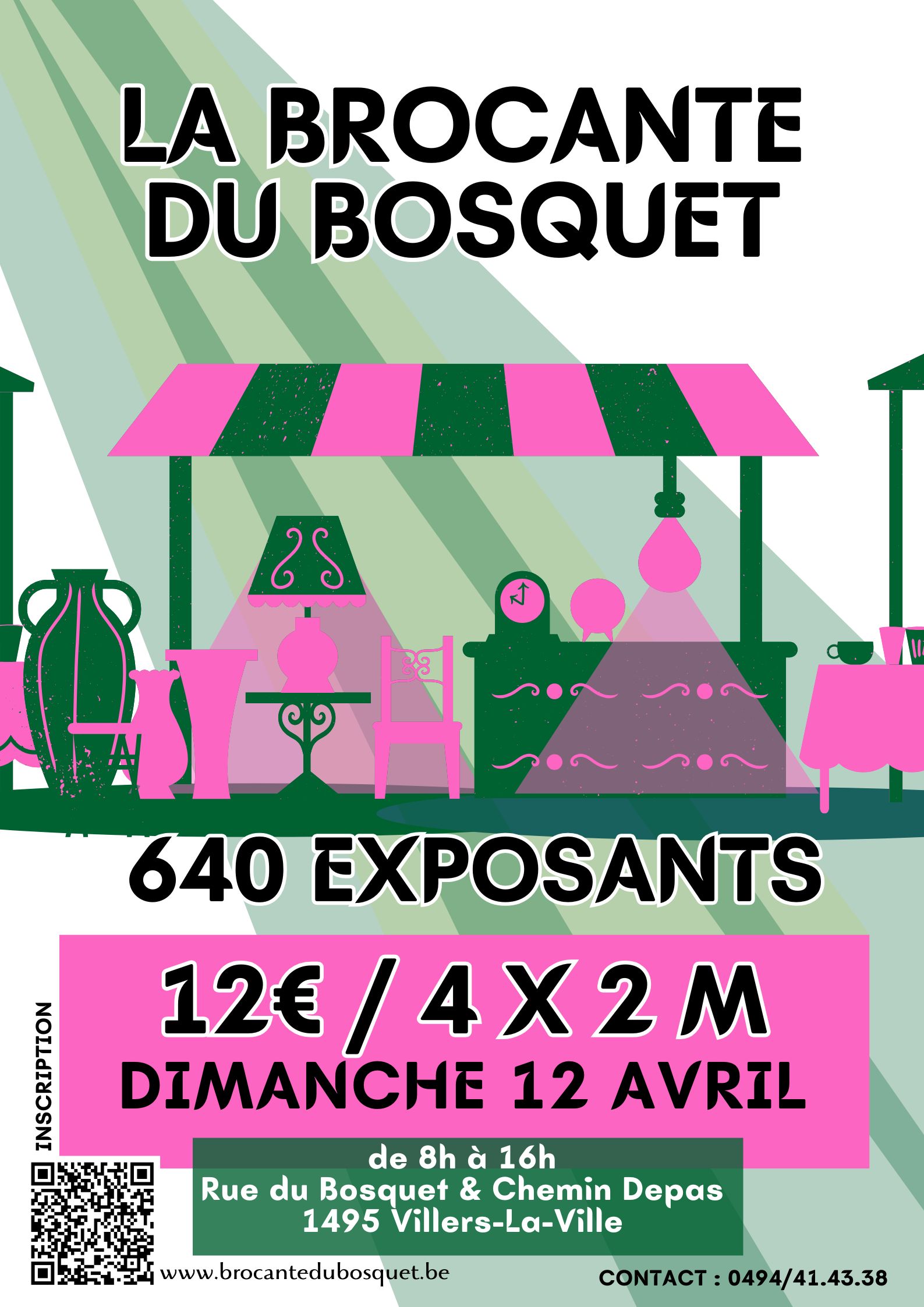 Le comité organisateur vous donne rendez-vous pour une nouvelle édition de la Brocante du Bosquet, ledimanche 12 avril de 08h00 à 16h00 à Tilly (Villers-la-Ville). Plus de 500 emplacements seront installés dans la