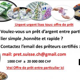 (pret.belgique.be@gmail.com ) Offre de prêt entre particulier très très rapide en Suisse et proximité- pret.belgique.be@gmail.com ----------- --------------- -------------------------------------------------------------------------------- Faites votre