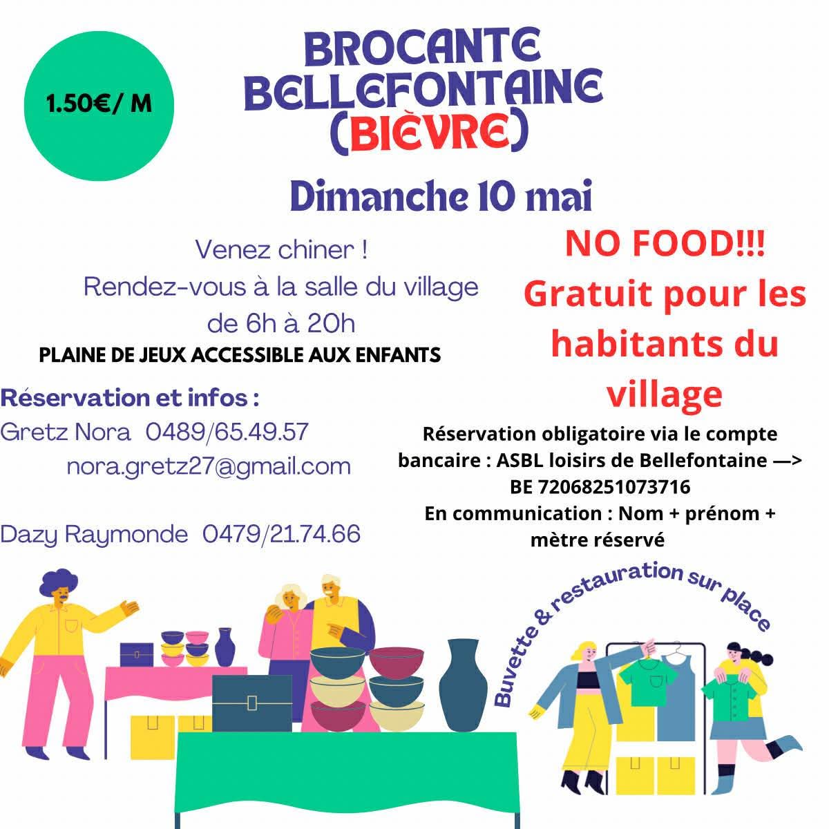 Brocante à Bellefontaine ( Bièvre )C'est le moment de faire un petit tri dans votre maison, garage, grenier et venir les vendre et leur donner une deuxième vie..