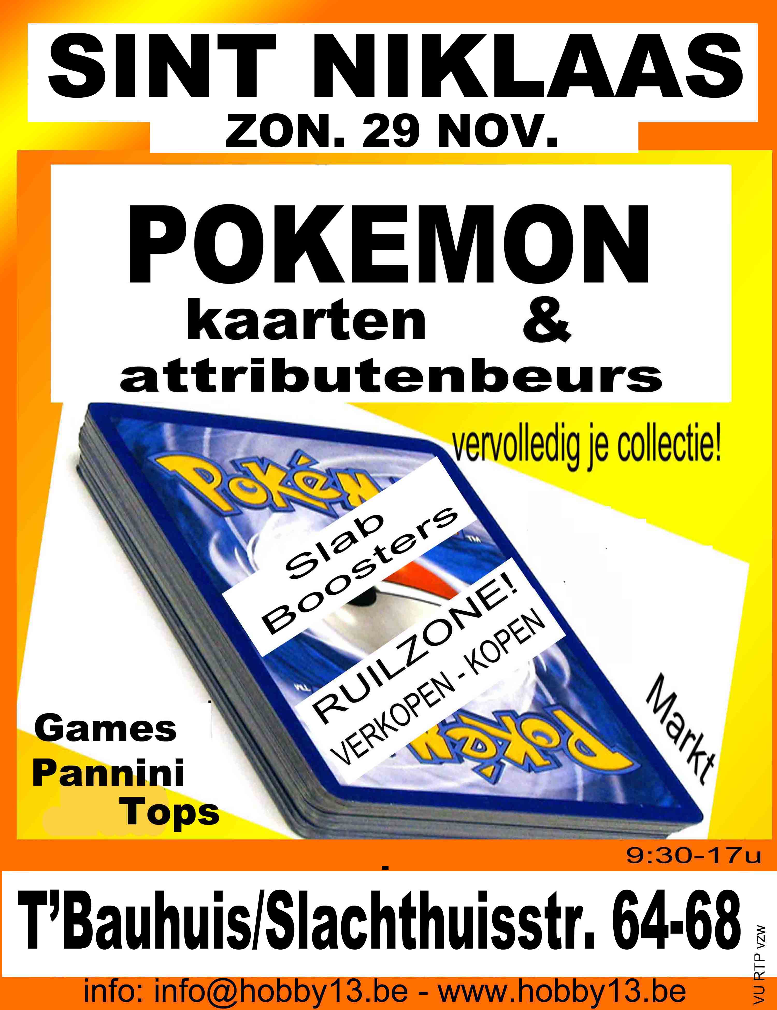 Samen met de cd & platenbeurs is er ook een pokémon kaarten beurs. Je kan er heel wat pokémon kaarten ruilen, verkopen & kopen, maar misschien ook dat ene kaartje die je ontbreekt in je verzameling vinden tegen een voordelige prijsInformations pratiques