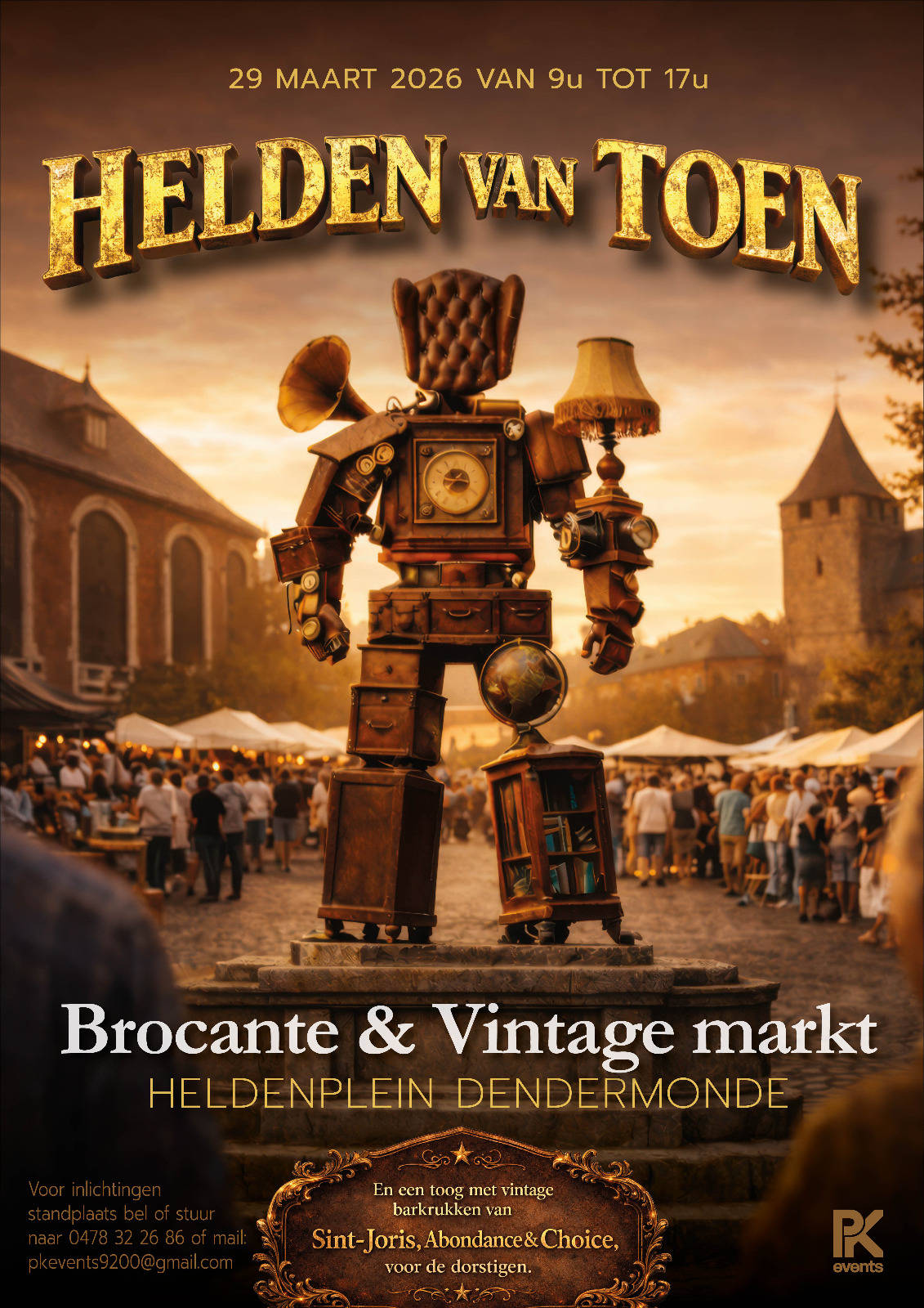 Bracante, vintage, antiekmarkt in hartje Dendermonde op het gezellige Heldenplein. Standhouders kunnen zich nog aanmelden, amper 7€ per stand (per 3meter).Zie affiche voor meer info