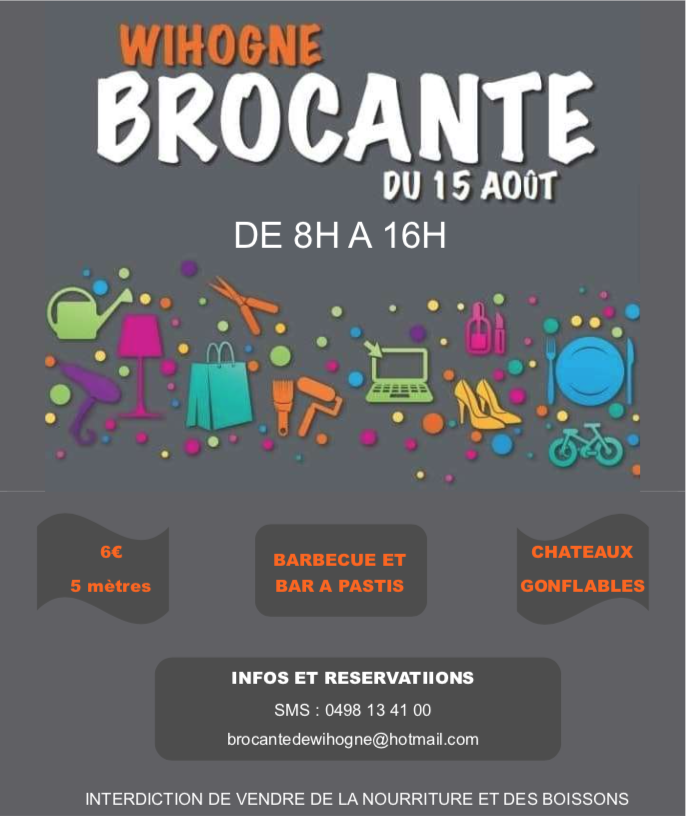 Brocante du 15 AoûtArrivée des exposants : 06,30 H