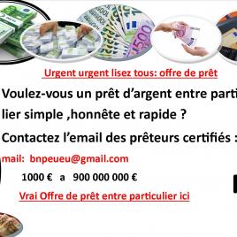 prêt entre particulier sans arnaque et sans aucun frais pret.legal.france@gmail.com