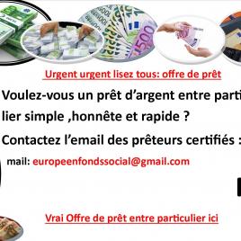 OFFRE DE PRÊT ENTRE PARTICULIER sérieux et rapide ( pret.legal.france@gmail.com )